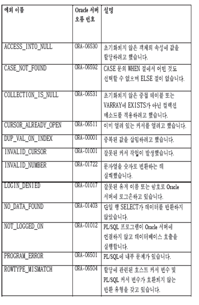 – 미리 정의되지 않은 예외는 표준 Oracle 오류.