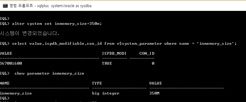 In-Memory Option Column Store 사이즈를 동적으로 증가시킬 수 있음 (감소는 안됩니다)