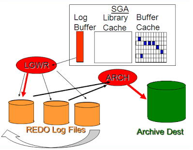 “Database writer(dbwr)와 archive 프로세스의 동작이 redo 로그 크기에 달려있기 때문에 Redo 로그 파일의 크기는 성능에 영향을 미칠 수 있다.
