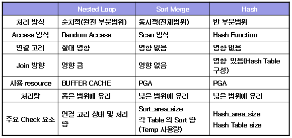 -조인 메소드 : Nested Loop Join, Sort Merge Join, Hash Join-