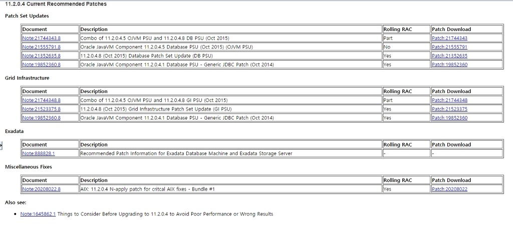 11.2.0.4를 눌러보면 아래와 같이 내용이 나오는데
