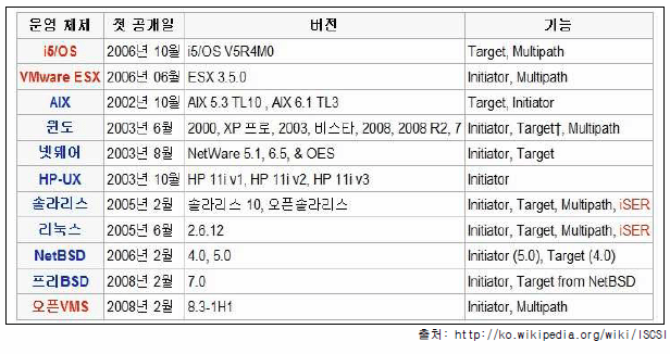 iSCSI는 다음과 같은 운영체제들이 지원하고 있다.
